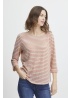 A soft textured 3/4 length sleeve t-shirt from Fransa with turn-up cuff detail and scooped hem