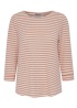 A soft textured 3/4 length sleeve t-shirt from Fransa with turn-up cuff detail and scooped hem. Great with jeans for a casual look. Colour: Coral. Fabric: 96% Polyester, 4% Elastane