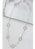 A shorter style silver necklace from Envy with open diamante clovers and an adjustable clap