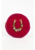 A handy little round coin purse from My Doris in a lovely soft velvet with colourful horseshoe gem embellishment. Colour: Red. Size: Approx 10cm