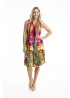 A lovely colourful midi length dress from Orientique in a handy easy care crinkle cotton cut with a flattering v-neckline with pleat detail. Colour: Multi. Fabric: Cotton