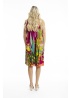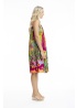 A lovely colourful midi length dress from Orientique in a handy easy care crinkle cotton cut with a flattering v-neckline with pleat detail