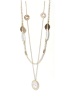 Gold & Off White two strand bead & chain necklace from Envy, a longer length with beads & discs along its length. Colour: Gold & Off White